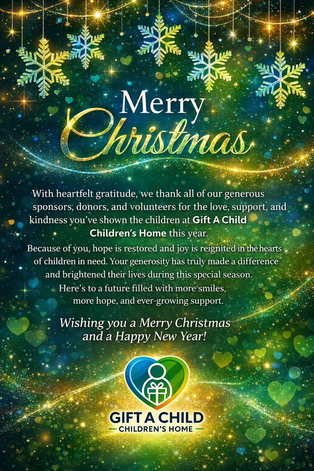 Thank you for making a difference to the lives of vulnerable children in 2025. We ask that you please stay safe until we all meet in 2026… Thank you for being apart of the Gift A Child Children’s Home family.